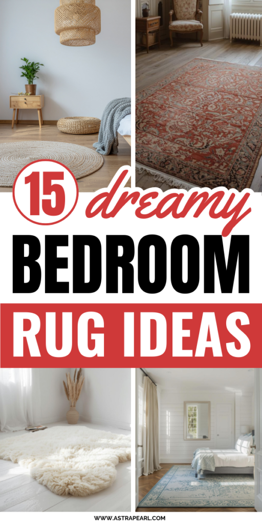 Get inspired by these 15 elegant bedroom rug ideas to create a serene and warm atmosphere.