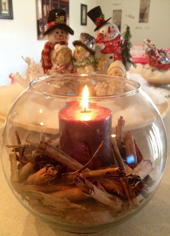 Add cinnamon sticks and a red candle in your glass vase. This easy Christmas vase filler will bring an elegant and cozy touch to your home.