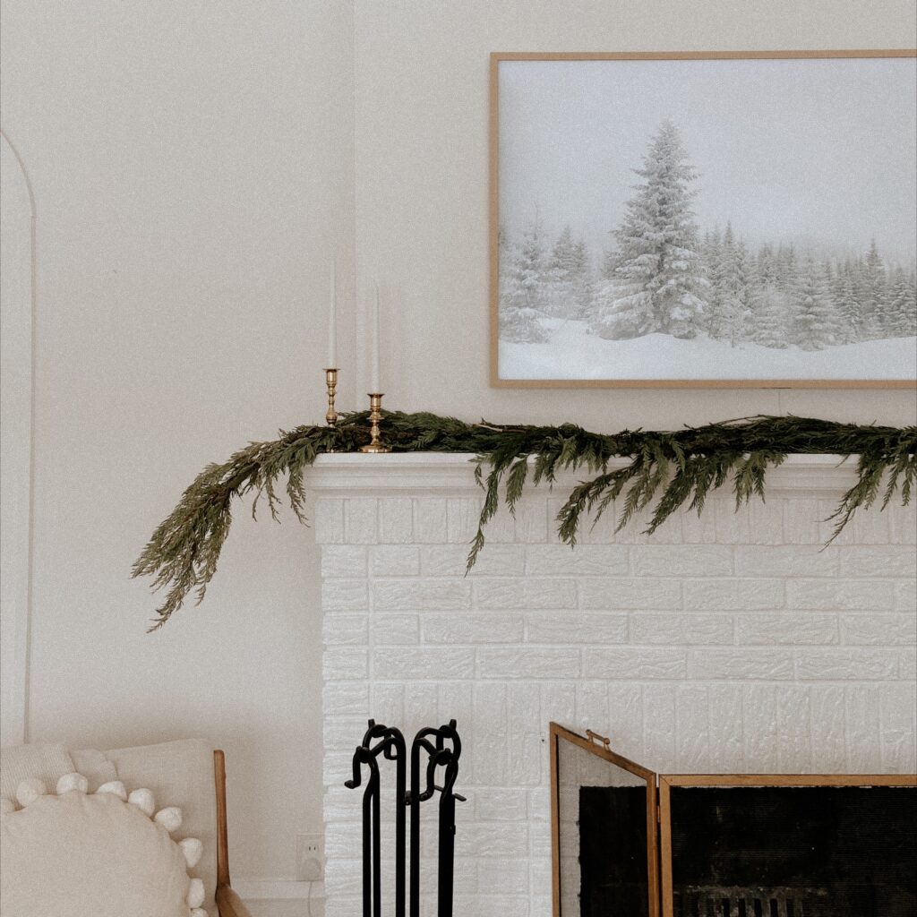 A greenery garland is a must-have for a Christmas mantel! Select a fresh or faux pine branch garland to add a natural and cozy feel to your living room.